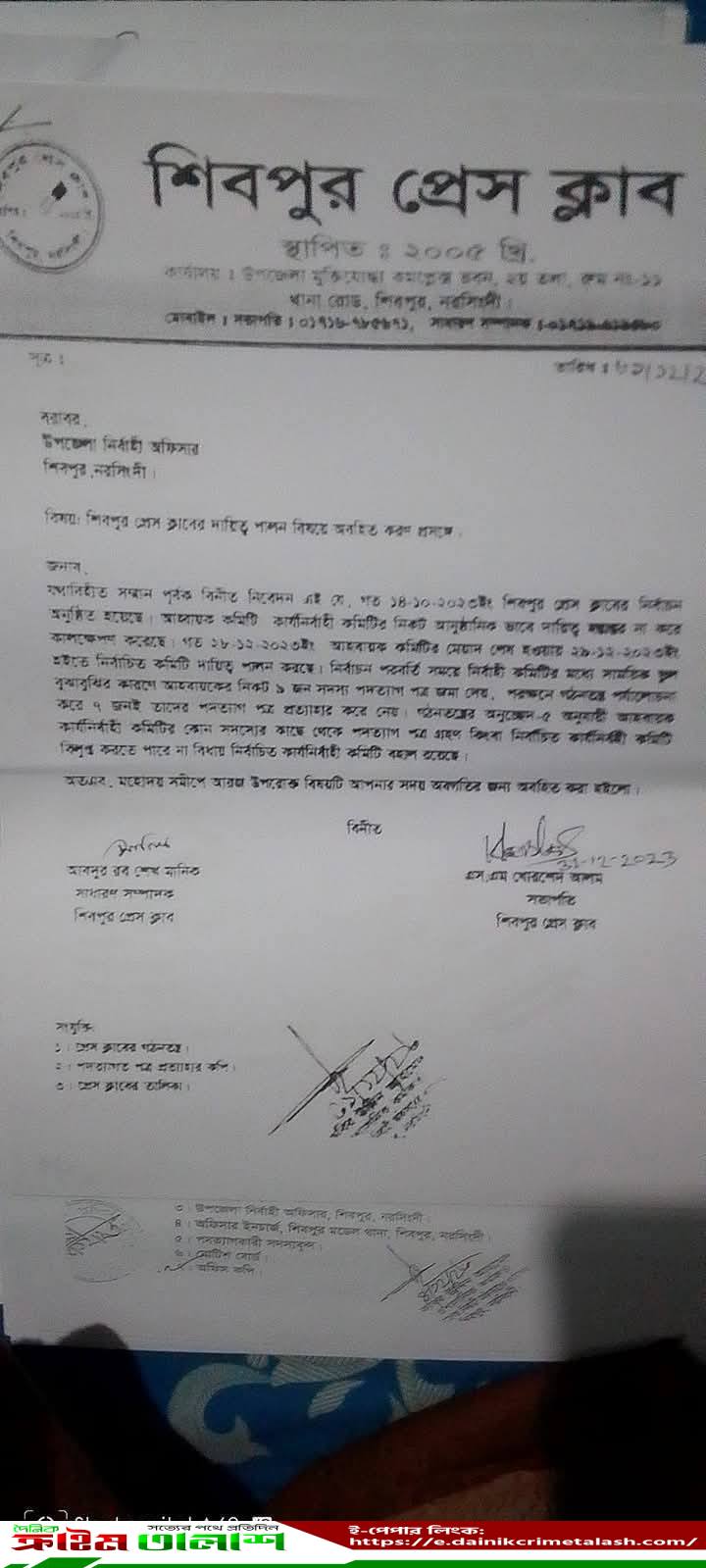 শিবপুর প্রেসক্লাবের কার্যক্রমে আদালতের নিষেধাজ্ঞা: চাঁদাবাজি রোধে সতর্কবার্তা
