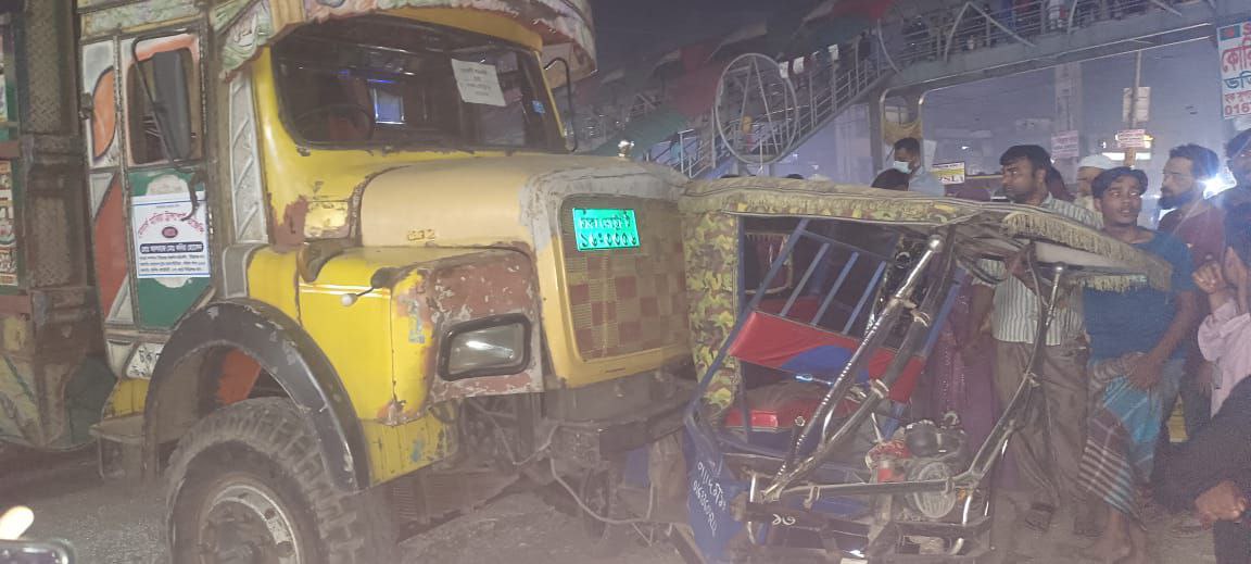মোঃলিটন চৌধুরী,সিদ্ধিরগঞ্জ (নারায়ণগঞ্জ): ঢাকা-চট্টগ্রাম মহাসড়কের নারায়ণগঞ্জের সিদ্ধিরগঞ্জ অংশে দ্রুতগামী একটি ট্রাকের ধাক্কায় ব্যাটারিচালিত অটোরিকশাতে থাকা এক অজ্ঞাত নারীর মৃত্যু হয়েছে।